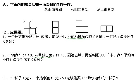 4、两个周长是8cm的正方形,拼成一个长方形,这个长方形的周长是 ( )