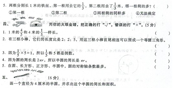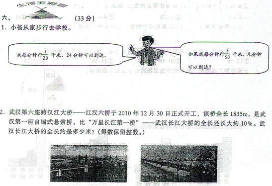 2011-2012学年度第一学期江岸区小学六年级数学期末试卷(3)