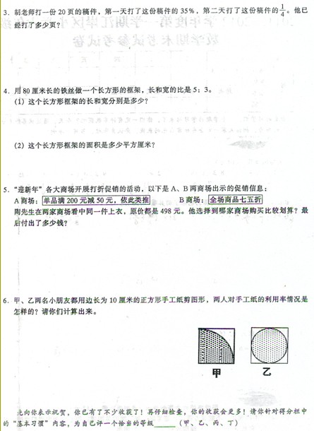 2011-2012学年度第一学期江岸区小学六年级数学期末试卷(4)