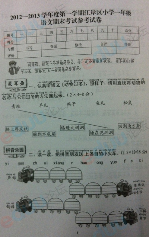 武汉市江岸区小学一年级语文期末试卷 武汉奥数网 2013-01-24 15:27:41 武汉奥数网1月24日:武汉市江岸区小学一年级语文期末考试试卷,更多免费一年级试题资源下载,欢迎在奥数网一年级试题资源库点击查看, 首页 上一页 下一页 尾页