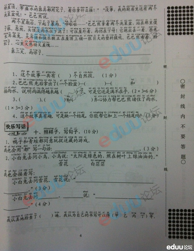武汉市江岸区小学一年级语文期末试卷(4)