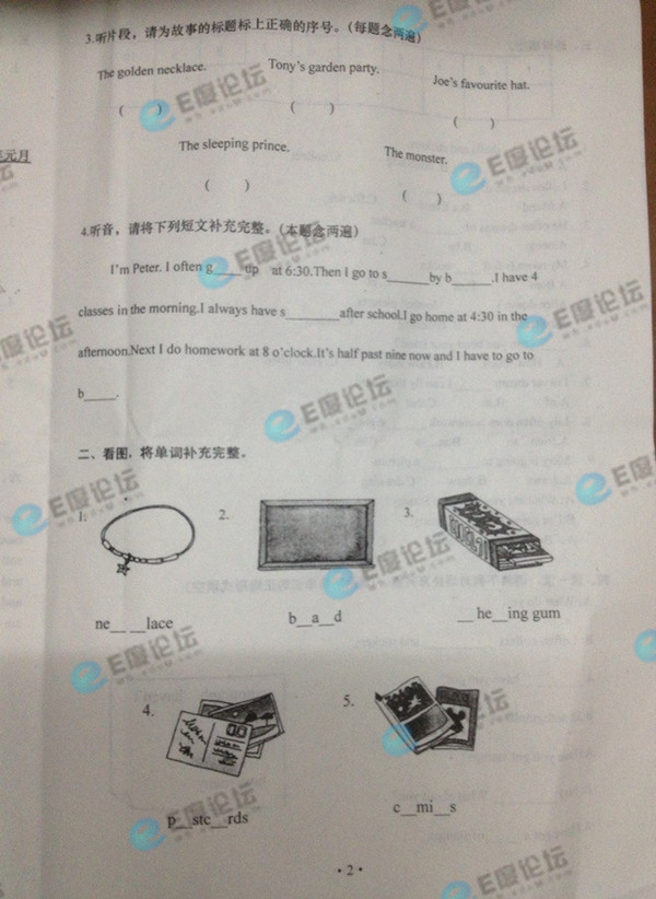 汉阳区小学六年级上册英语期末考试试卷(2)
