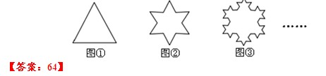 14、由图①中周长为27的等边三角形开始,第一次把三角形的每条边三等份,并在每条边三等份后的中段向外作新的等边三角形,但要像图②那样去掉与原三角形重合的边,这样形成六角星形;第二次再在图②六角星形每条边三等份后,中段向外作新的等边三角形,但要像图③那样去掉与原六角星形重合的边,继续如此方式…,便产生了雪花曲线。请你求出第三次所得雪花曲线的周长。