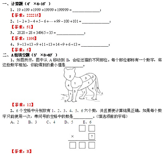 | 2012年秋明心数学资优生水平测试六年级试卷答案 | 2012年秋明心数学资优生水平测试五年级试卷答案 |