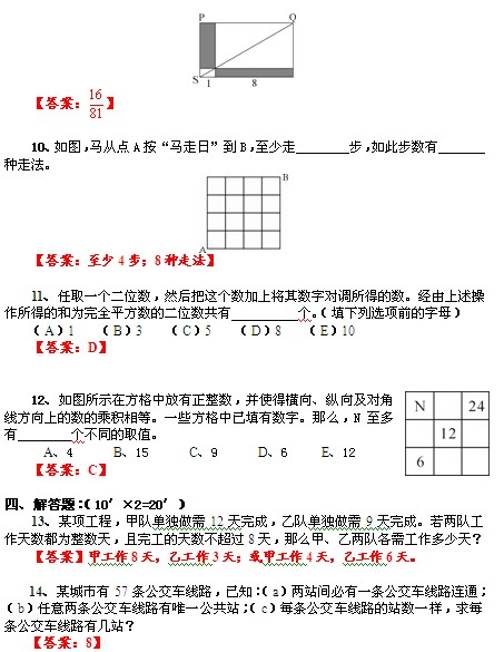 2012年春明心数学资优生水平测试六年级试卷答案(3)