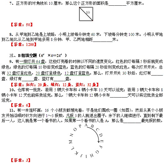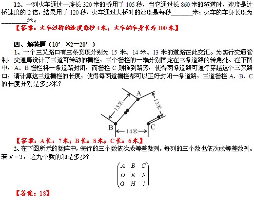 2012年秋明心数学资优生水平测试四年级试卷答案(2)