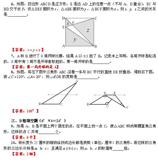 2012年秋明心数学资优生水平测试五年级试卷答案(2)