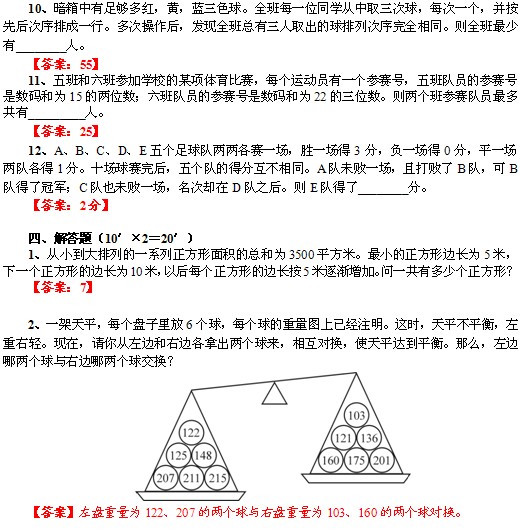 2013年春明心数学资优生水平测试四年级试卷答案(3)