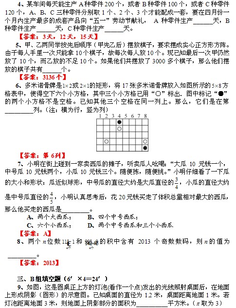 2013年春明心数学资优生水平测试六年级试卷答案(2)