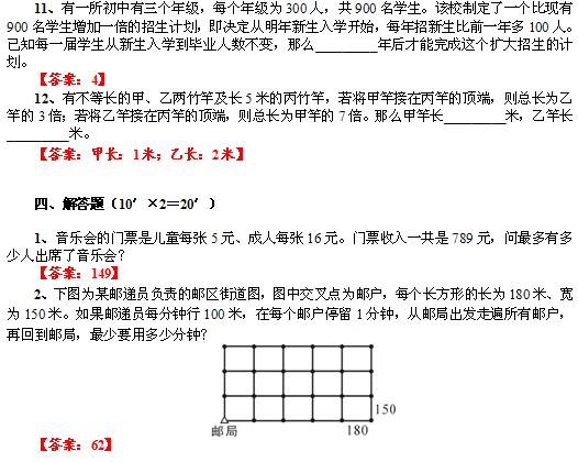 2013年春明心数学资优生水平测试三年级试卷答案(3)