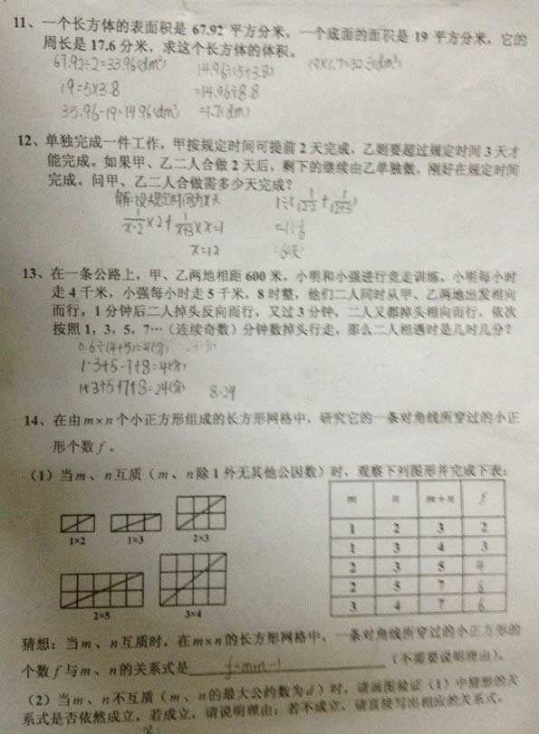 汉阳三中2013小升初摸底考试数学试卷(2)