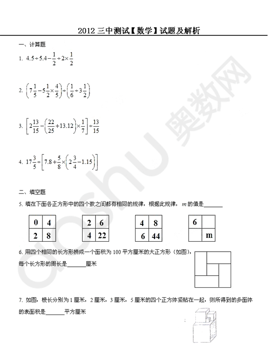 武汉第三寄宿中学2012年分班考试数学真题试卷(附答案) 【E度论坛】 2013-07-16 14:35:35 武汉奥数网7月16日:据小道消息称,武汉市第三寄宿中学(汉阳三初)将7月21日进行新初一分班考试。小编搜集到了2012年的该校的分班考试数学试卷,上传提供广大用户下载。 (试卷免费下载在最后一页) 首页 上一页 下一页 尾页