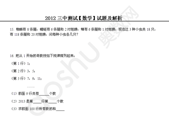 武汉第三寄宿中学2012年分班考试数学真题试卷(附答案)(3)