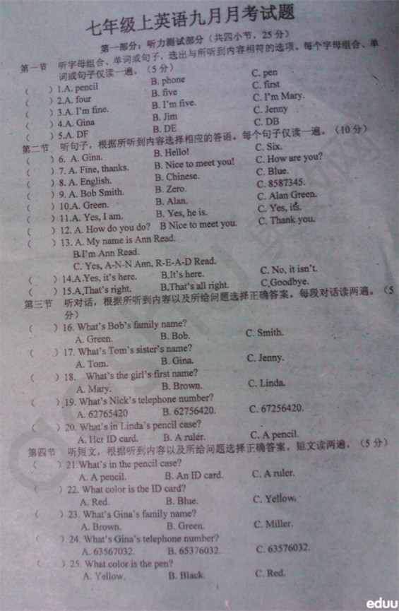 光谷某中学七年级第一次月考英语试卷免费下载 武汉奥数网整理 2013-10-08 10:17:40 武汉奥数网10月8日:武汉光谷一中学七年级第一次月考英语试卷,提供免费下载。 请下载附件: 《光谷某中学七年级第一次月考英语试卷.zip》 (本地下载在线阅读) 小编推荐: 2013年武汉市江岸区小学六年级双基测试数学试卷 2013年武汉市江岸区小学六年级双基测试语文试卷
