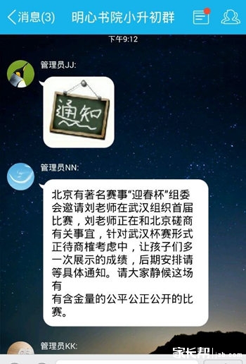北京著名赛事“迎春杯”组委会邀请刘老师在武汉组织首节比赛,刘老师正在和北京磋商有关事宜,针对武汉杯赛形式正待商榷考虑中,让孩子们多一次展示的成绩,后期安排请等具体通知。请大家静候这场有含金量的公平公正公开的比赛。