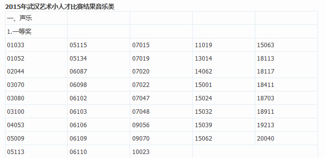 2015年武汉市艺术小人才音乐类获奖名单