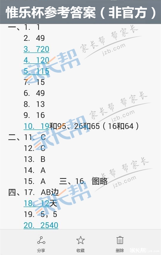 2015年武汉惟乐杯六年级试题答案和分数线(2)
