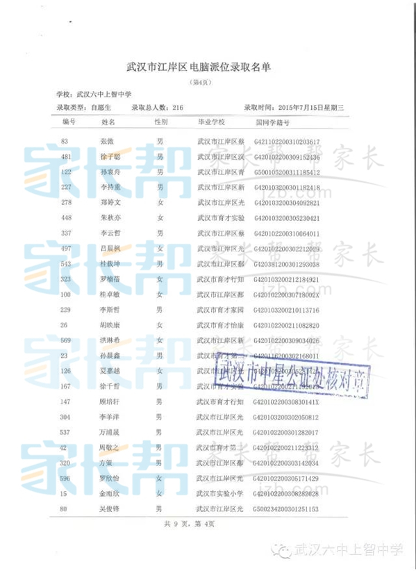 2015武汉六中上智中学小升初摇号名单出炉(4)