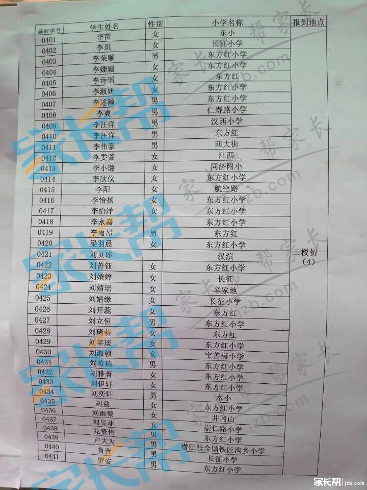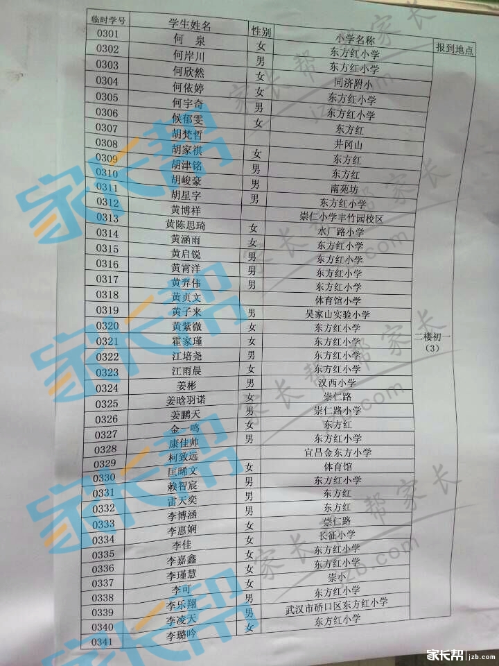 2015年武汉十一初新初一分班情况(2)