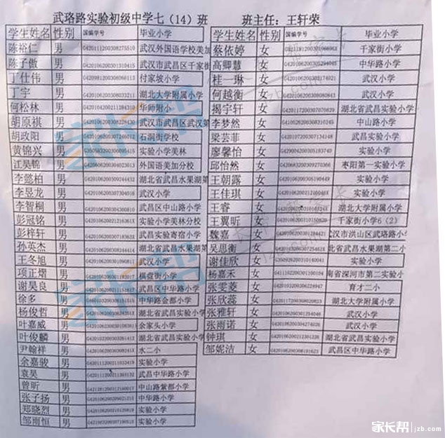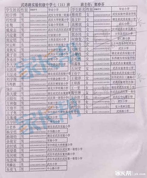 2015年武汉武珞路中学新初一分班名单(8)