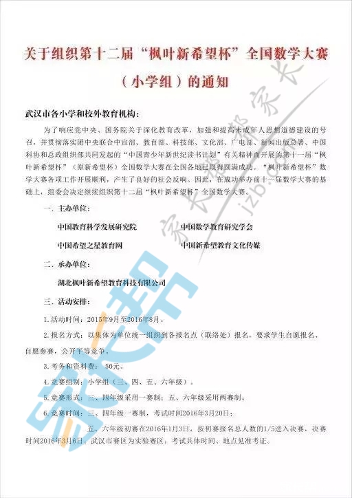 2016年武汉杯赛拉开帷幕,下面分享武汉新希望杯的参赛信息。