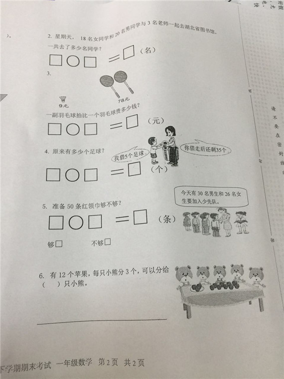 武汉武昌区小学一年级数学期末考试卷