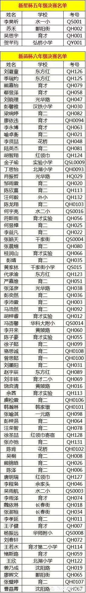 2016武汉小升初新星杯,新苗杯决赛入围名单出来了,看看自己是否榜上有名。