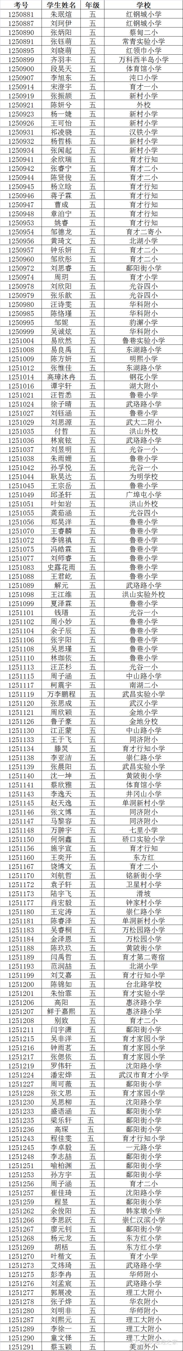 2016武汉小升初新希望杯初赛入围名单(新东方)(2)