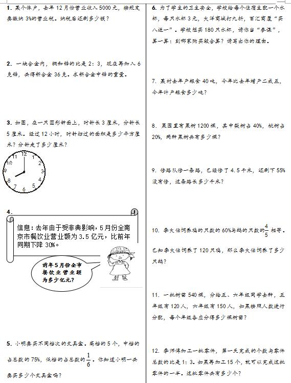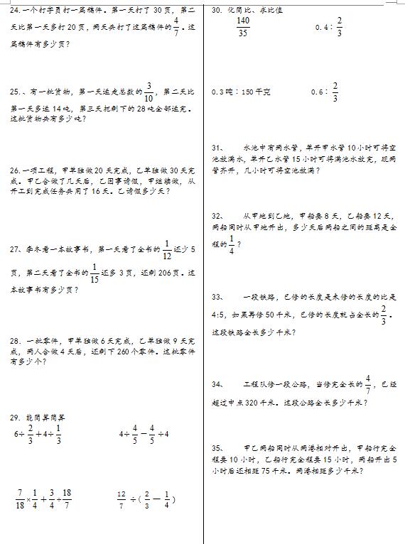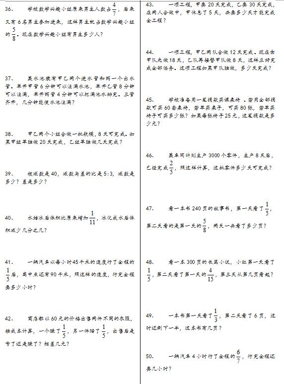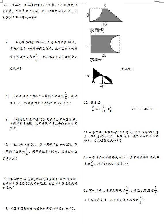人教版小六数学上应用题/计算题专项练习