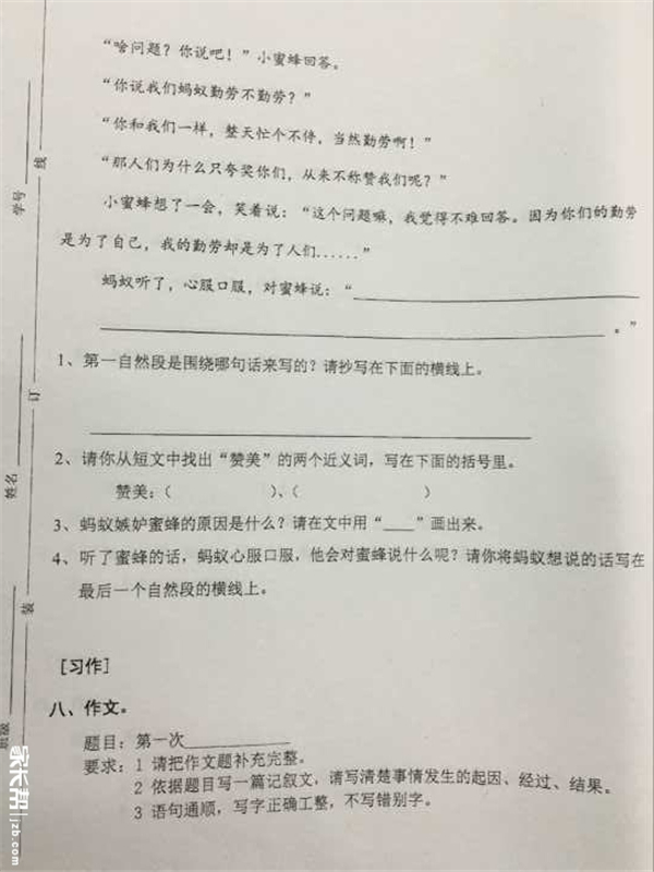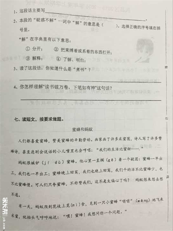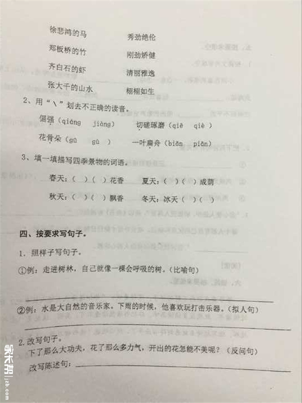 2016武汉武昌区三年级上语文期末试卷(鄂教版)
