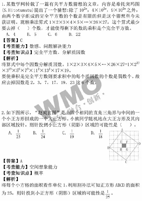【世奥赛武汉赛区五年级A卷试卷解析】