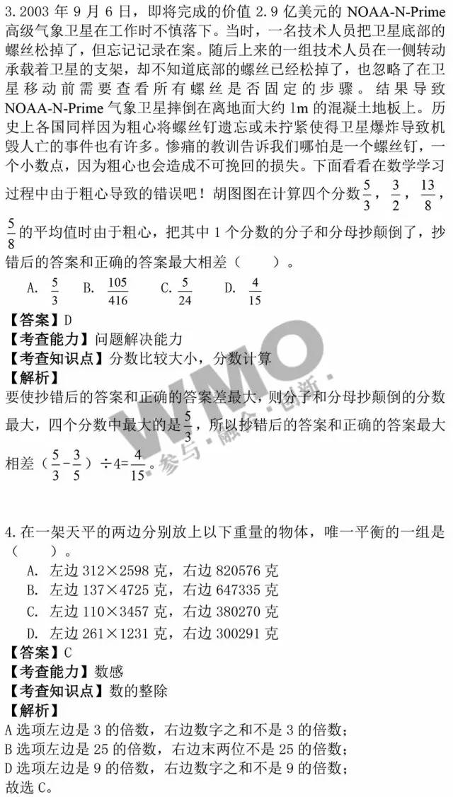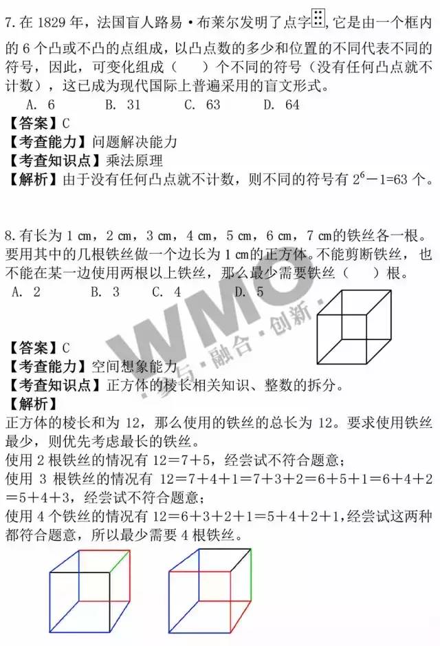 2016年武汉世奥赛将于3.13日(周日)进行,其中六年级考试时间为上午08:30—10:00,五年级考试时间为上午11:00— 12:30,三年级/四年级/初中考试时间均为下午14:00—15:30,下面小编分享此次试题及真题解析,大家可以对下答案,提前知道自己的成绩,预 祝所有同学都可以考出理想结果。【推荐:世奥赛考前攻略】