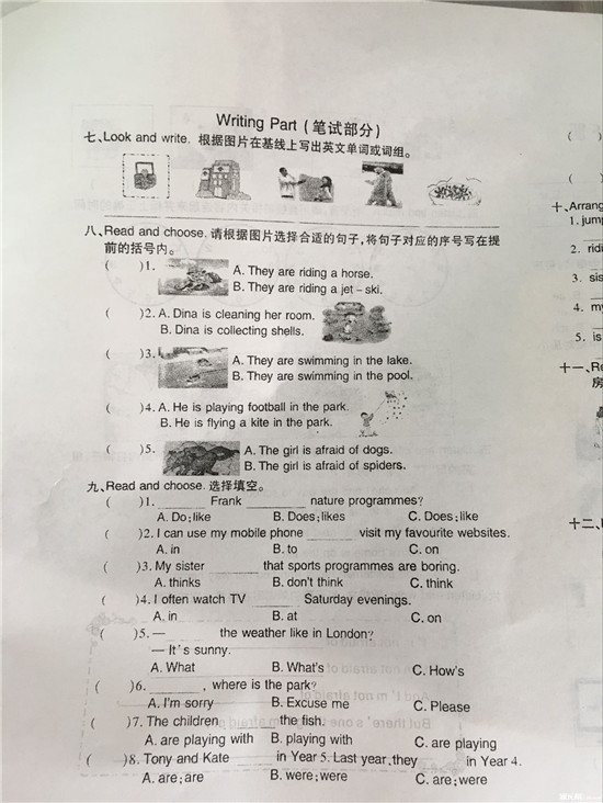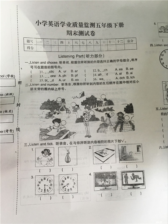 2016武汉江汉区五年级英语期末试卷