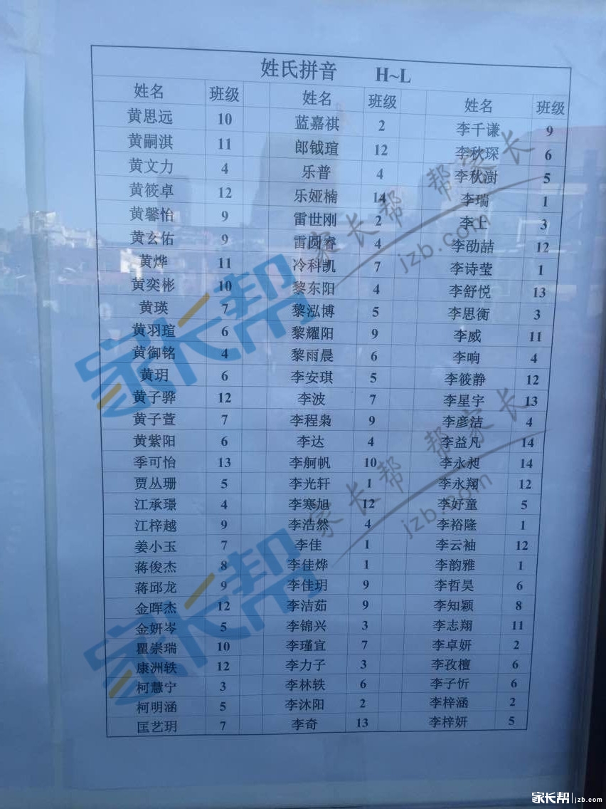 2016武汉二中广雅中学新初一分班名单公示(3)