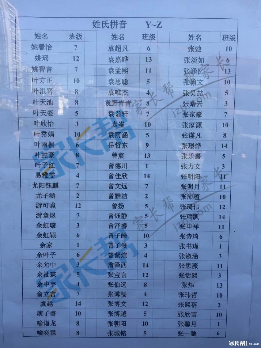 2016武汉二中广雅中学新初一分班名单公示(7)