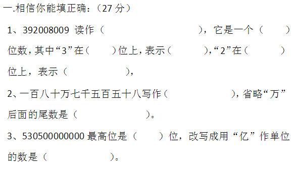 人教版小学四年级上册数学期中试卷及答案(卷一)