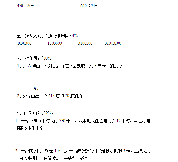 小学四年级上册数学期中试卷九(人教版) (3)