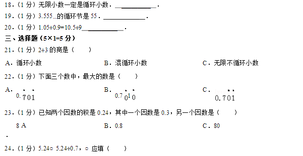 五年级上册数学期中试卷及答案卷一(2014年)(2)