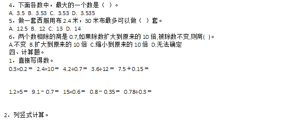 五年级上册数学期中试卷二(2014年)(2)