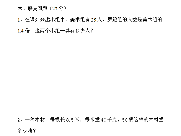 五年级上册数学期中试卷及答案卷四(2014年) (7)