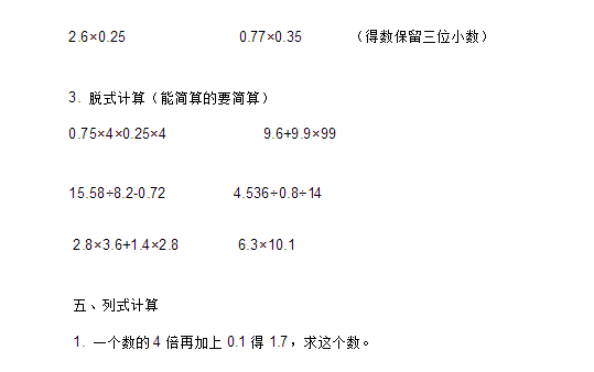 小学五年级上册数学期中考试卷五(人教版)(4)