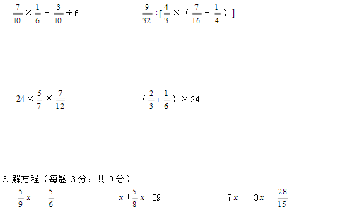 六年级数学上册期中试卷及答案之卷一(人教版)(3)