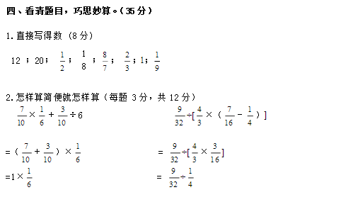 六年级数学上册期中试卷及答案之卷一(人教版)(9)