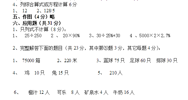 六年级数学上册期中试卷及答案之卷二(人教版)(10)
