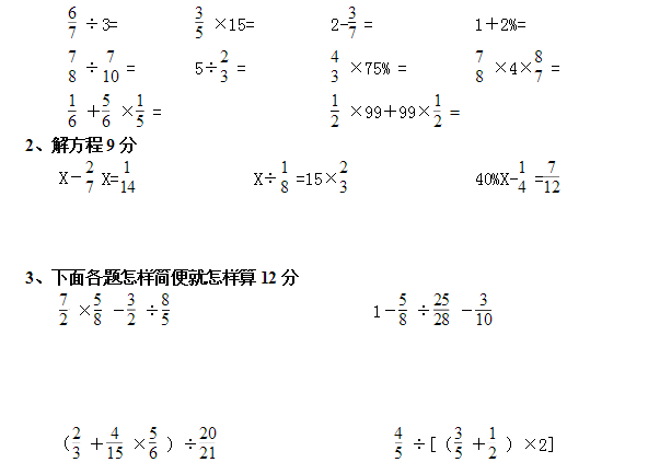 六年级数学上册期中试卷及答案之卷二(人教版)(4)