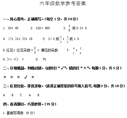 六年级数学上册期中试卷及答案之卷三(人教版)(7)