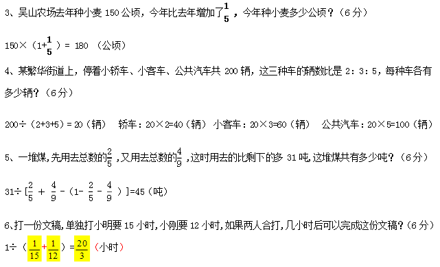 六年级数学上册期中试卷及答案之卷六(人教版)(13)