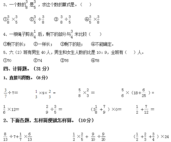六年级数学上册期中试卷及答案之卷六(人教版)(3)