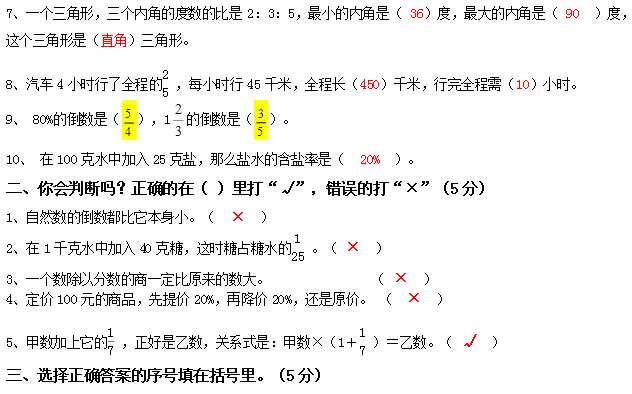 六年级数学上册期中试卷及答案之卷六(人教版)(8)