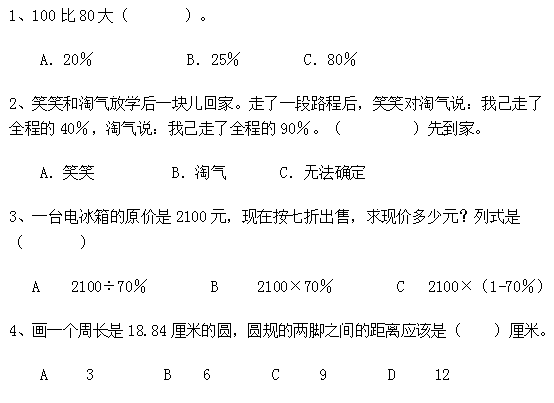 六年级数学上册期中试卷及答案之卷七(人教版)(2)